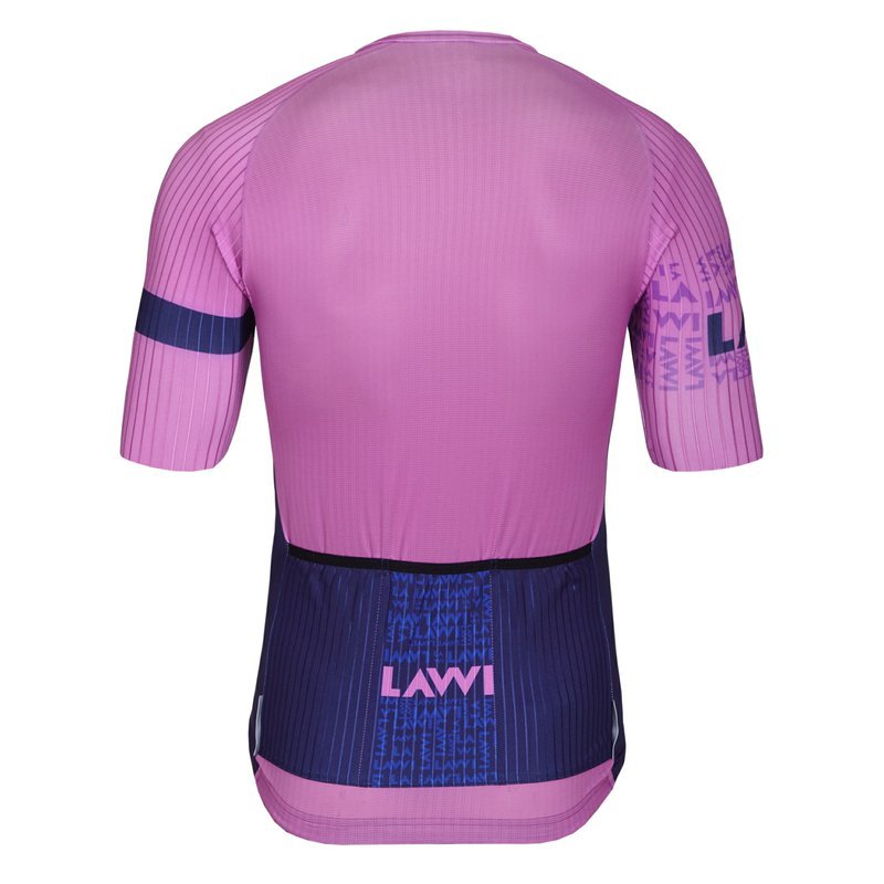 Cyklistický dres MAGNUS LILA ve vel. XS má celorozepínací zip, nízký límec a spodní lem se silikonovou gumou, která drží dres na místě. Na zádech jsou tři praktické kapsy. Střih Race je přiléhavý, lehký a maximálně přizpůsobivý — ideální do teplého počasí.
