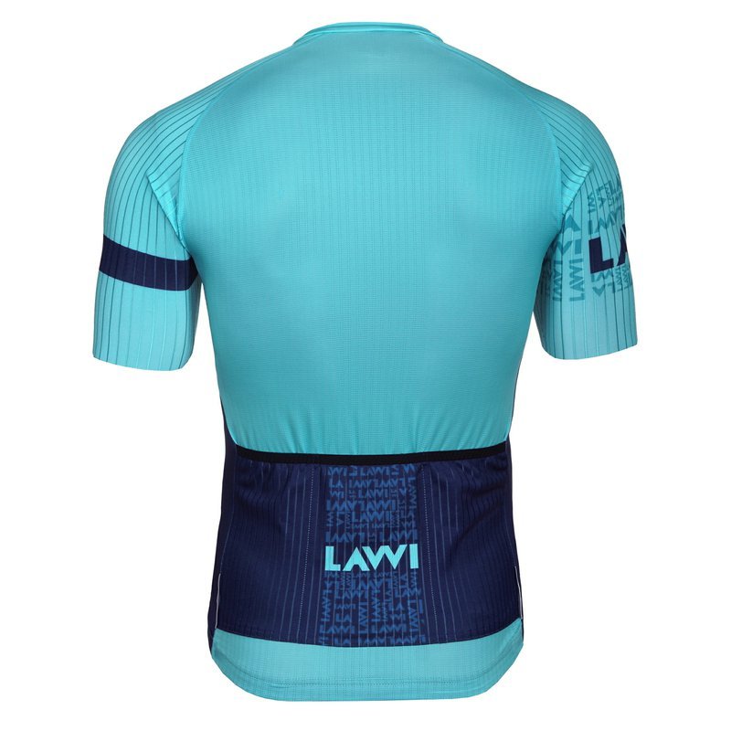 Cyklistický dres MAGNUS TYRKYS ve vel. XS má celorozepínací zip, nízký límec a spodní lem se silikonovou gumou, která drží dres na místě. Na zádech jsou tři praktické kapsy. Střih Race je přiléhavý, lehký a maximálně přizpůsobivý — ideální do teplého počasí.