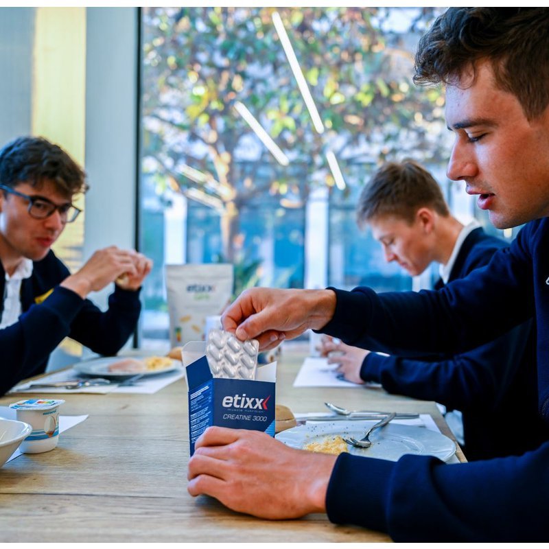 Bylo prokázáno, že kreatin ve svalech lze zvýšit přibližně o 20 % u netrénovaných i dobře trénovaných jedinců dlouhodobou suplementací kreatinem. Zvýšením množství kreatinfosforu ve svalech budou mít svaly více paliva pro zvýšení výkonu během krátkého intenzivního cvičení. Doplněk Etixx Creatine 3000 obsahuje také glutamin a taurin – dvě klíčové aminokyseliny.
