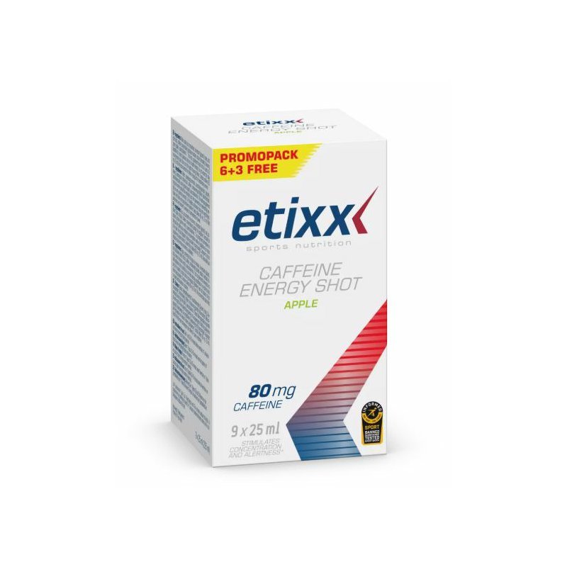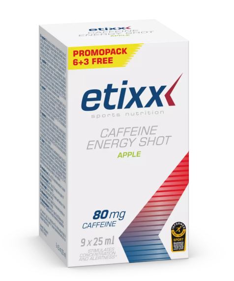 Etixx Caffeine Energy Shot je energetický nakopávač obsahující 80 mg kofeinu na jednu dávku. Kofein je přírodní stimulant, který zlepšuje soustředění, bdělost a koncentraci, zkracuje reakční dobu a snižuje pocit únavy a bolesti. Příjem kofeinu prostřednictvím Etixx Caffeine Energy Shot poskytuje duševní i fyzický energetický impuls před a během cvičení.