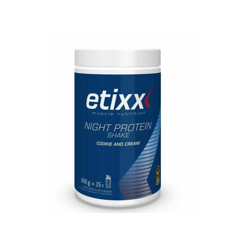 Etixx Night Protein je proteinový koktejl s nízkým obsahem cukru a tuku vhodný pro všechny typy sportovců. Díky micelárnímu kaseinu je perfektním koktejlem pro optimalizaci budování svalů a regenerace během noci. Je také ideálním doplňkem denní potřeby bílkovin v kombinaci s jídly bohatými na bílkoviny rozloženými po celý den.