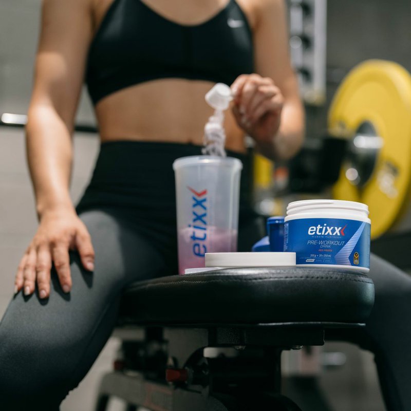 Etixx Pre-Workout je vysoce kvalitní nápoj, který obsahuje řadu složek (jako je kreatin, arginin, taurin, citrulin, kofein, vitamíny B6 a B12), které vám pomohou zahájit trénink plní energie a optimalizovat váš výkon během tréninku.