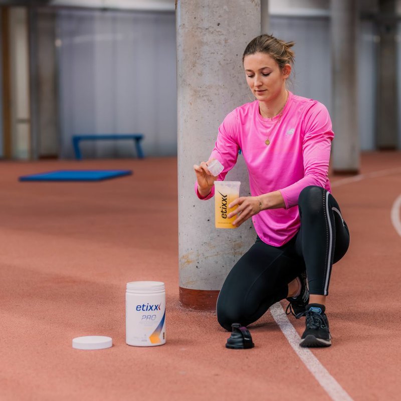 PRO LINE Recovery Shake, směs sacharidů s vysokým obsahem (±60 g), izolátu syrovátkového proteinu (±30 g) a leucinu (3 g), byl sestaven na základě nejnovějších vědeckých poznatků. Tento profesionální koktejl navíc obsahuje také 1,2 g soli na porci s cílem doplnit elektrolyty (soli) ztracené potem a urychlit a optimalizovat rehydrataci.