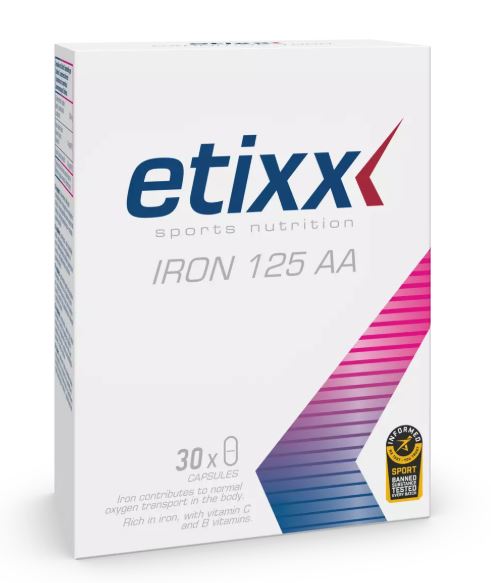Vzhledem k tomu, že železo je pro fungování svalů během cvičení tak důležité, sportovci by měli zvážit užívání přípravku Etixx Iron 125 AA. To může být obzvláště prospěšné při tréninku ve výšce pro optimalizaci tvorby červených krvinek. Železo se snadněji vstřebává v kombinaci s vitamínem C a hůře v kombinaci s kofeinem nebo produkty bohatými na vápník. Etixx Iron 125AA obsahuje přidaný vitamín C, vitamín B2 a vitamín B6, které všechny přispívají ke snížení únavy a vyčerpání, a také vitamín B12 pro podporu přirozené tvorby energie a tvorby červených krvinek. Přidaný mangan přispívá k ochraně buněk před oxidačním stresem a pomáhá s normálním energetickým metabolismem.