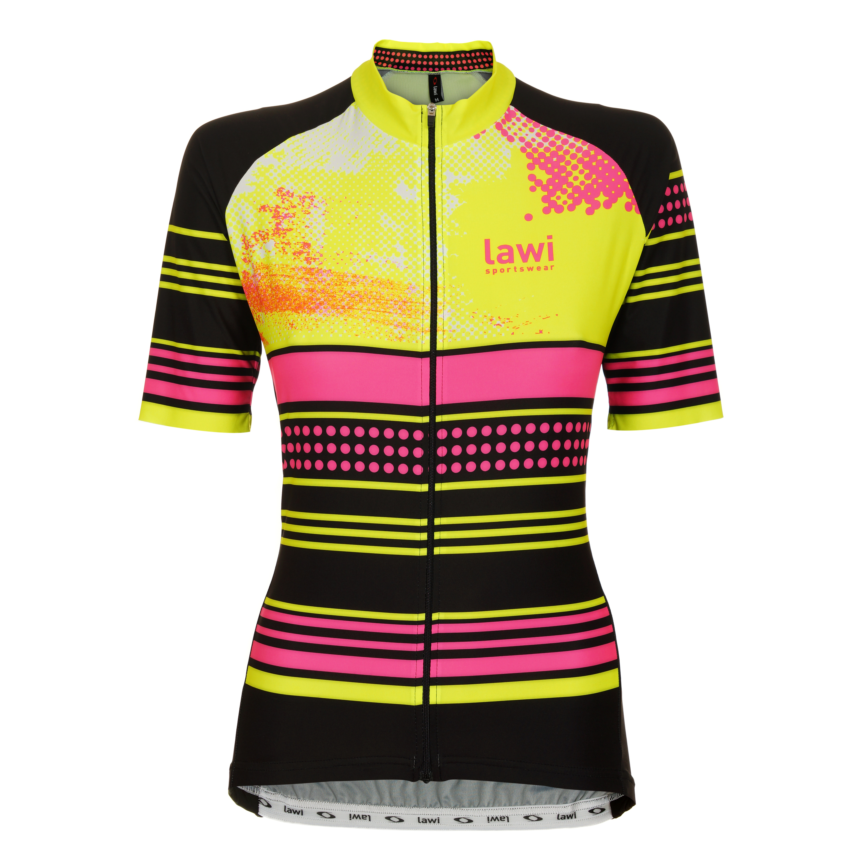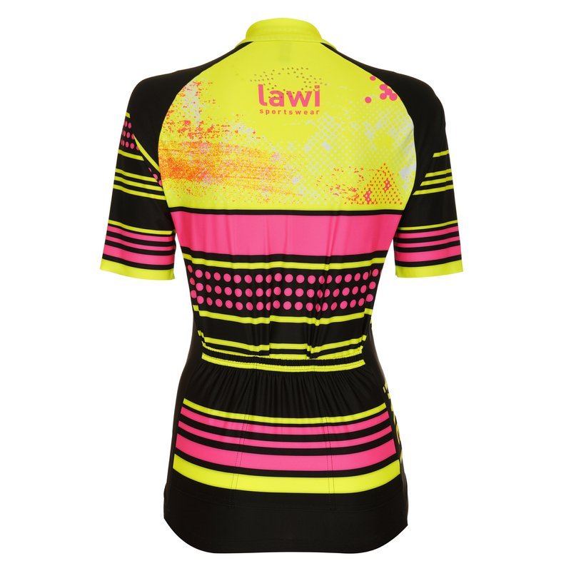 Dámský cyklistický dres Raina Black velikost M v moderním designu a pestrých barvách má na vybraných místech speciální odvětrávací zóny, vpředu má dlouhý celorozepínací zip, na zádech trojkapsu, v pase je zakončen gumou, je ušitý ve střihu Race.